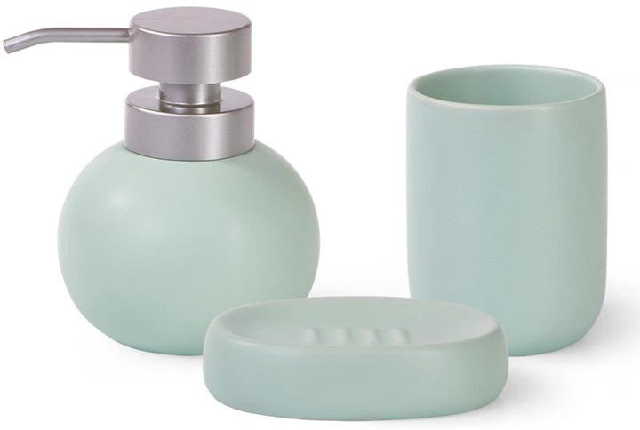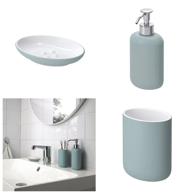Керамічний набір аксесуарів для ванної кімнати IKEA EKOLN бірюзовий - дозатор стакан мильниця кераміка