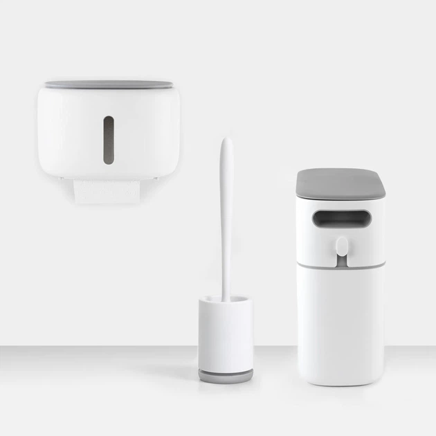 Набір аксесуарів для санвузла MVM-25 (полиця, йоржик, гачки 4 шт), білий/сірий