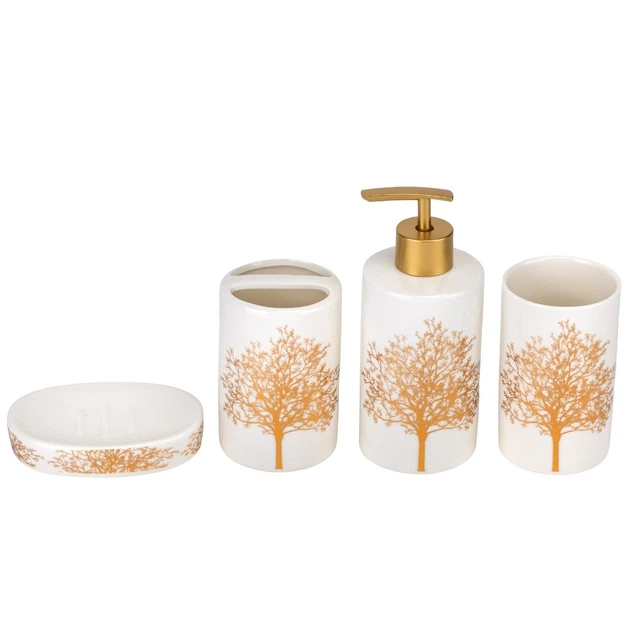 Набір для ванної кімнати 4 предмети Золоте дерево кераміка 9190-016 білий