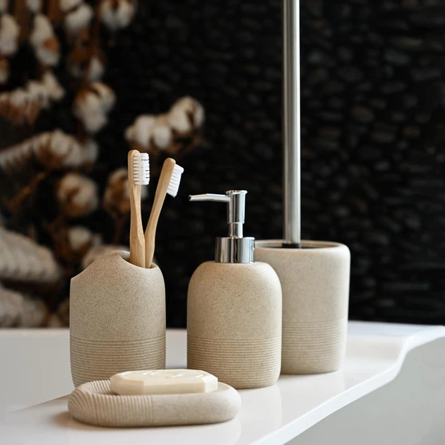 Набір аксесуарів для ванної кімнати з йоржиком LONDON: мильниця, диспенсер для мила, стакан для зубних щіток, йоржик для уні