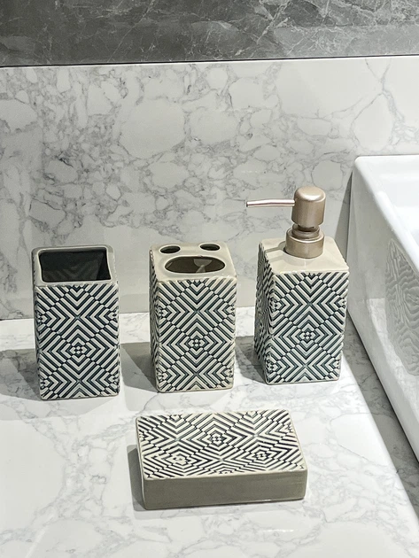 Аксесуари для ванної кімнати з кераміки: дозатор, мильниця, стакани, Сірий