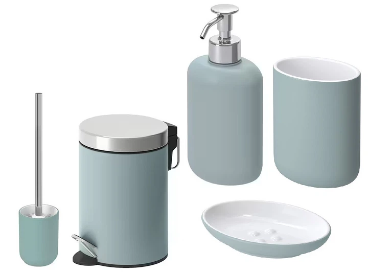 Набір аксесуарів для ванної кімнати IKEA EKOLN бірюзова кам'яна кераміка: мильниця стакан дозатор йоржик відро