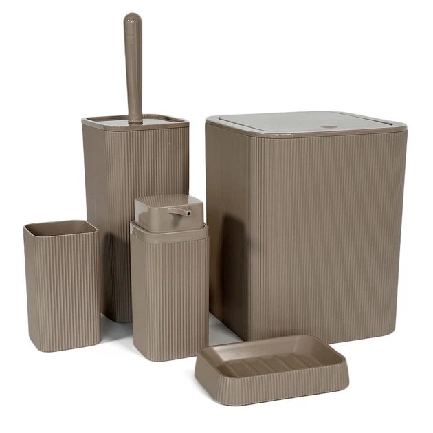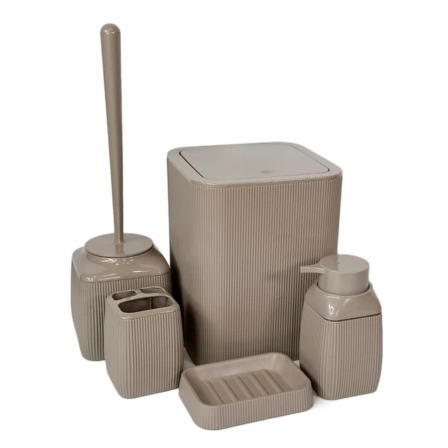 Набір аксесуарів для ванної кімнати STRIPED 5в1, квадратний, мокко