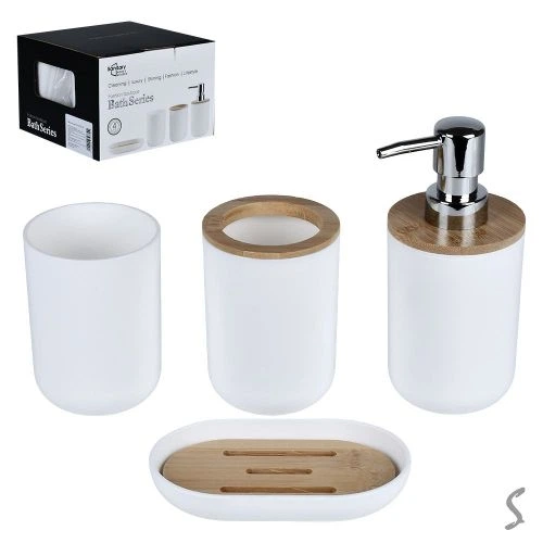 ARDESTO Набір для ванної кімнати Minimalism 360мл, 3 предмети, поліпропілен, бамбук, білий