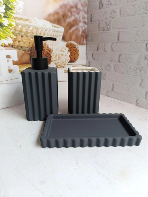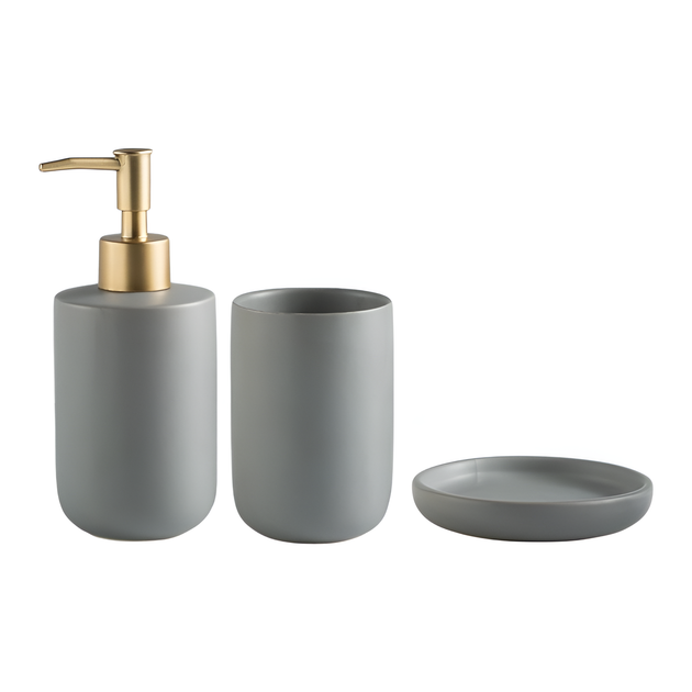 Керамічний набір для умивальника – аксесуари для ванної в сірому кольорі з 3-х предметів