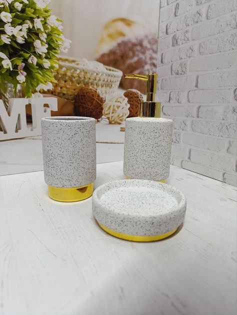 Набір аксесуарів для ванної кімнати BonaDi White Granite & Gold кераміка 3 предмети Білий BD-851-335