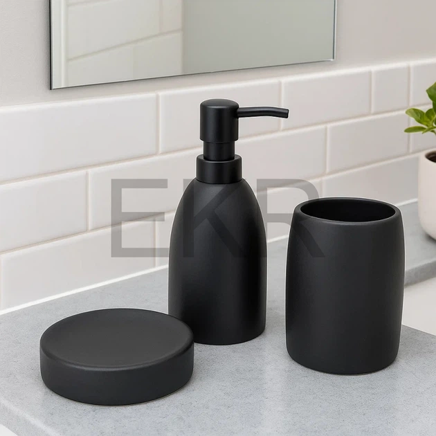 Набір для ванної кімнати (3 предмети) дозатор для мила, склянка для зубних щіток та мильниця, дизайн - чорний 851-325