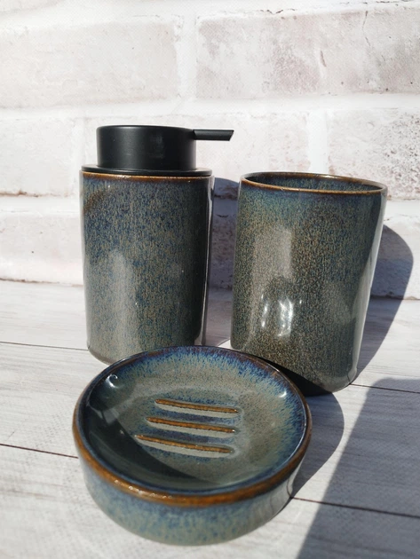 Набір аксесуарів Fusion "Amber" для ванної кімнати: дозатор, мильниця та склянка (184515)