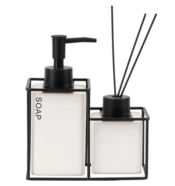 Набір для ванної кімнати (3 предмети) дозатор для мила, склянка для зубних щіток та мильниця, дизайн - чорний 851-325