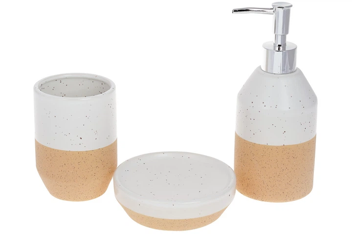 Набір для ванної (3 предмети): дозатор 380 мл, склянка для зубних щіток 320 мл, мильниця, колір — біло-пісочний