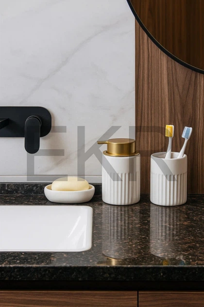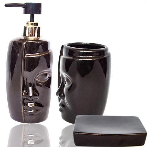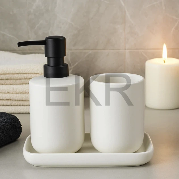 Набір для ванної кімнати (3 предмети) дозатор для мила, склянка для зубних щіток та мильниця, дизайн - білий з чорним дозато