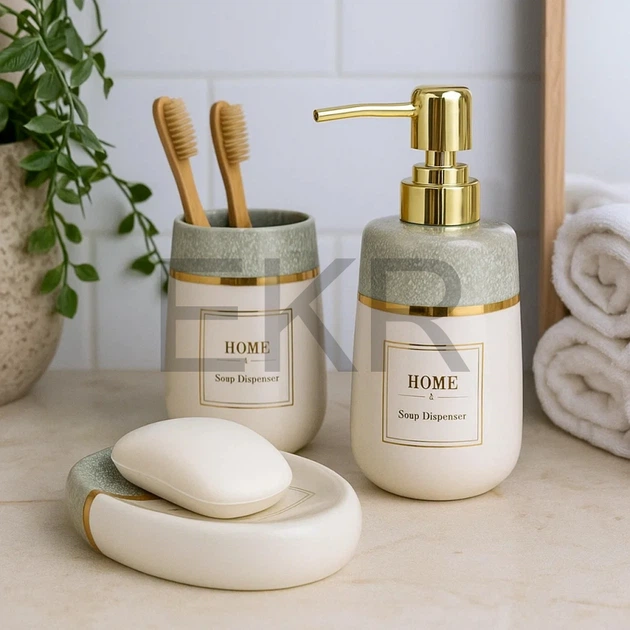 Набір аксесуарів для ванної "Home" (дозатор, склянка, мильниця) – біло-зелений дизайн (853-178)