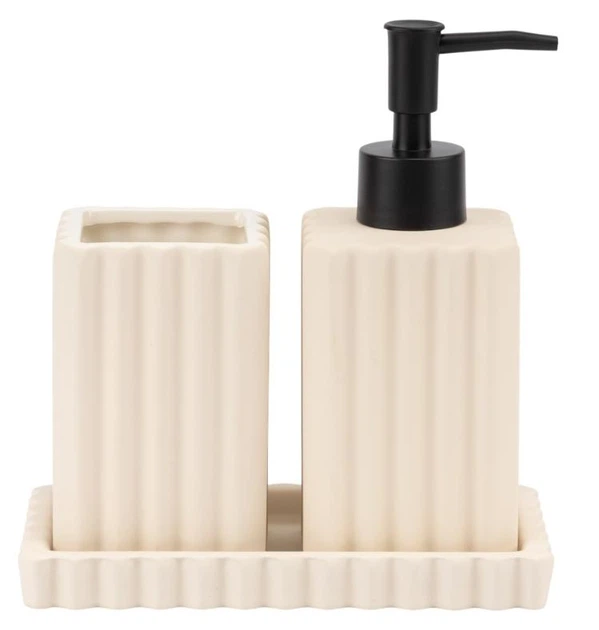 Набір для ванної кімнати (3 предмети) дозатор для мила, склянка для зубних щіток та мильниця, дизайн - бежевий мокко (851-32