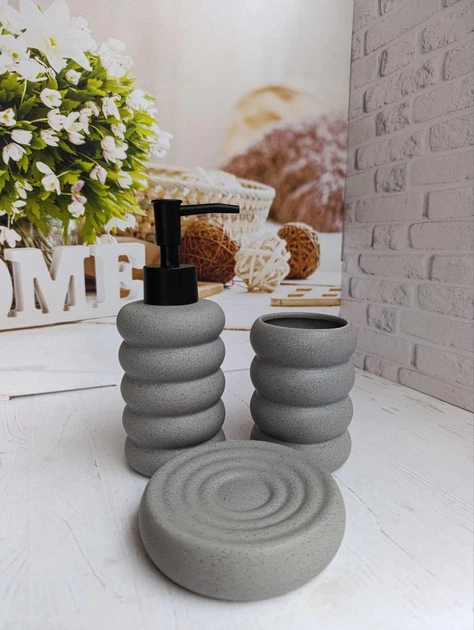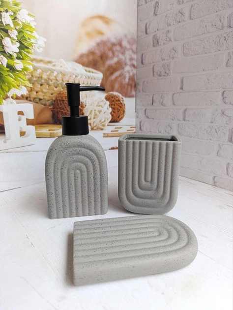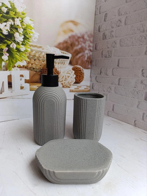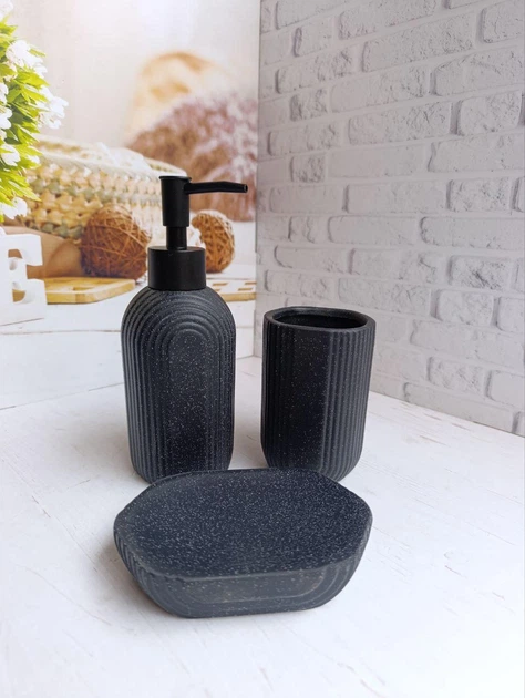 Набір для ванної кімнати (3 предмети) дозатор для мила, склянка для зубних щіток та мильниця Bona Di 851-330 сірий мармур