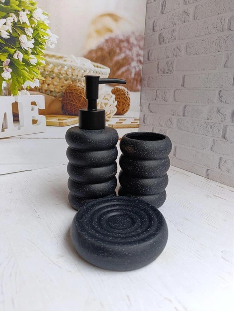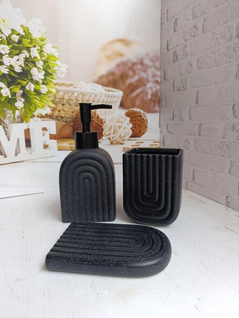 Набір аксесуарів для ванної кімнати Elisey Ніжний рельєф керамічний 3 предмети Чорний 9277-009