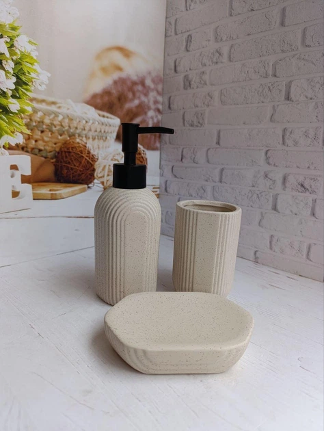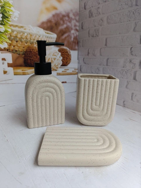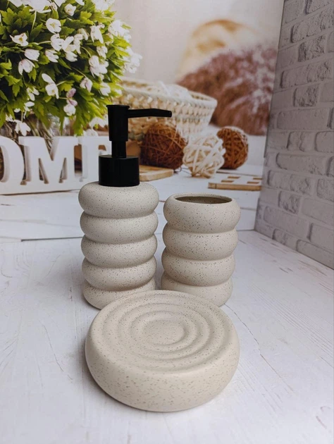 Набір аксесуарів для ванної кімнати Elisey Ніжний рельєф керамічний 3 предмети Бежевий 9277-007