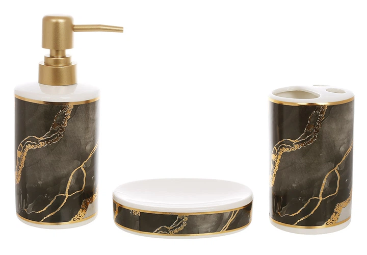 Набір аксесуарів для ванної Bona Di 853-173 3 предмети сірий мрамор із золотом