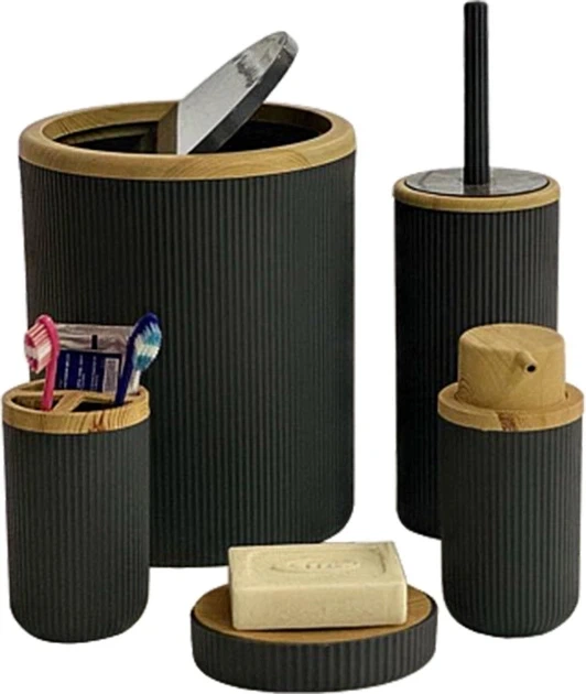 Набір аксесуарів для ванної кімнати 5 шт темно-сірий Eurogold Aura ISR-5778