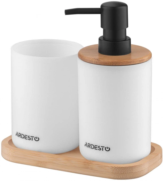 Набір для ванної кмінати Ardesto Minimalism 360мл, 3 предмети, поліпропілен, бамбук, білий