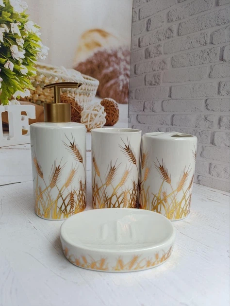 Набір аксесуарів для ванної кімнати Elisey Золоті колоски керамічний 4 предмети Білий 9190-016