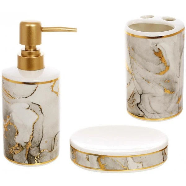 Набір аксесуарів Bright для ванної кімнати "Grey Marble Gold" 3 предмети, кераміка (243424)