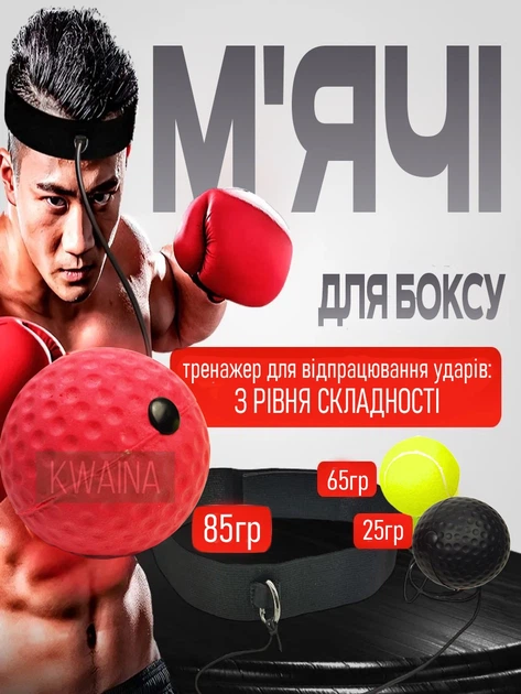 Тренажер-боксерський м'яч для розвитку реакції, координації та швидкості ударів з трьома м'ячами різної жорсткості та регуль