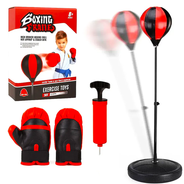 Тренажер боксерський набір на стійці 70-110см, з рукавицями та насосом / Дитяча груша на підставці (L)