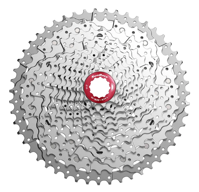Касета 11-k 11-46T SUN RACE MX8 MTB, алюмінієвий павук, Metallic Silver