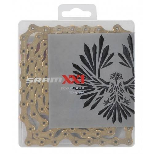 Ланцюг Sram PC XX1 EAGLE GOLD 12 швидкостей це міцна і легка ланцюг яка створена із застосуванням нових технологій для велосипедів з 12 швидкісною трансмісією. Вона має міцну конструкцію з'єднання ланок за допомогою технології Eagle PowerLock ™ і завдяки технології X-Sync 2 ™, яка за рахунок форми агресивних зубів забезпечує краще зчеплення ланцюга для більш плавного перемикання, і більш ефективної