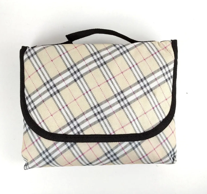 Килимок для пікніка та пляжу 150х150 см водонепроникний складаний, бежевий у чорну смужку