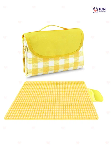 Водостійкий універсальний килимок для пляжу і пікніка, зі збільшеною підстилкою 150x200 см, Жовтий у клітинку (1659146542)