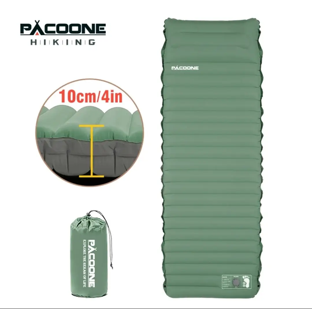 Матрац туристичний потовщений з вбудованим насосом і подушкою PACOONE Green,