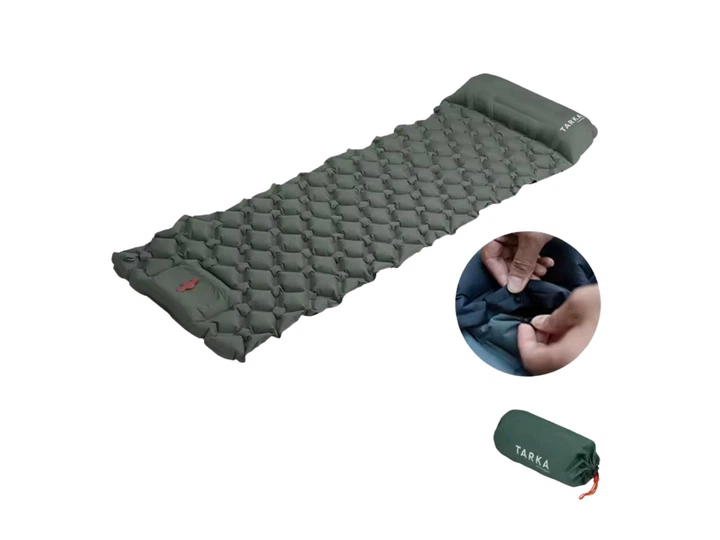 Надувний туристичний килимок TARKA із вбудованою подушкою темно-зелений