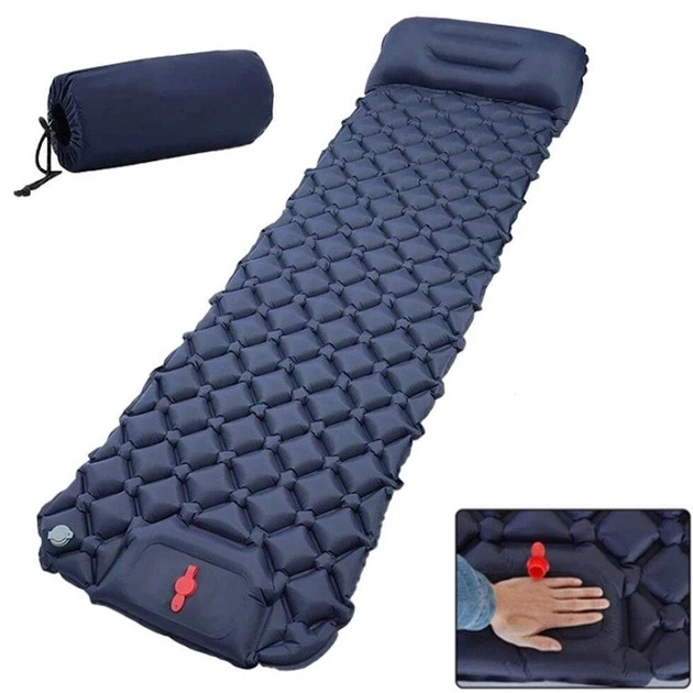 Каремат туристичний надувний 22570 см, темно-синій, з подушкою та вбудованим насосом для кемпінгу
