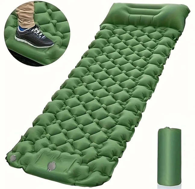 Надувний туристичний спальний матрац (каремат) Pacoone із вбудованим насосом та подушкою Зелений