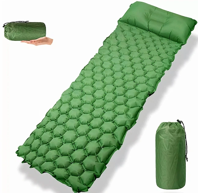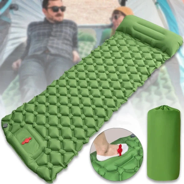 Матрац надувний туристичний PACOONE потовщений килимок з вбудованим ножним насосом і подушкою міцний карімат, що самонадуває