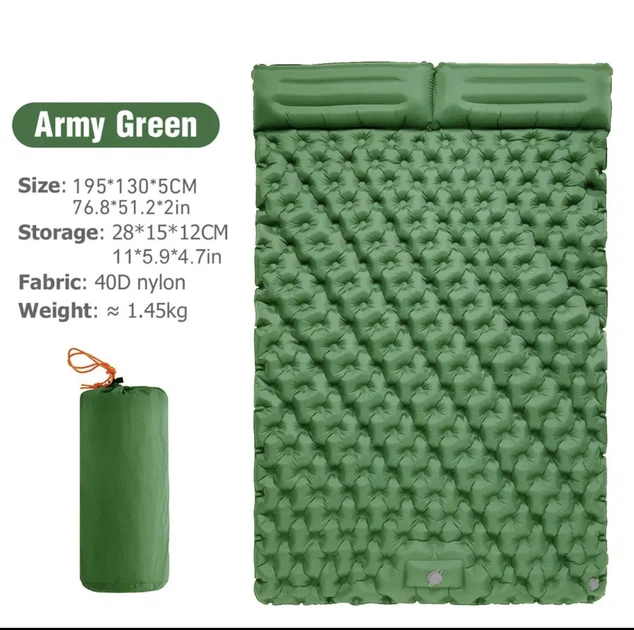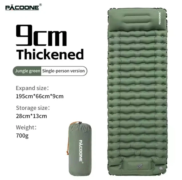 Матрац надувний туристичний PACOONE потовщений 195x70x10см килимок з вбудованим ножним насосом і подушкою міцний карімат, що