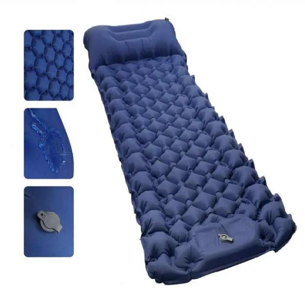 Туристичний надувний матрац (каремат) з подушкою Outdoor Sleeping із вбудованим насосом Темно синій