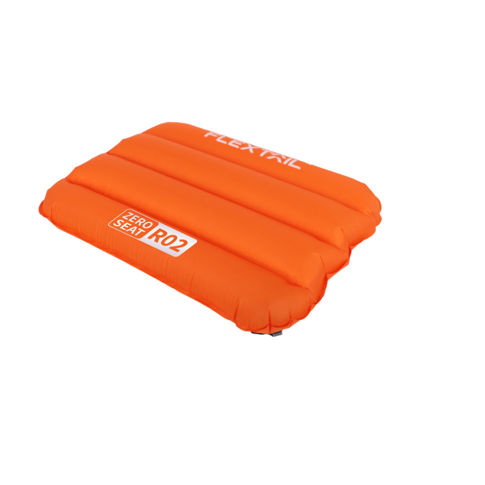 Надлегка надувна сидушка Flextail Zero Seat R02 завтовшки 70 мм у повністю надутому вигляді. Теплоізоляційний рейтинг R-value сягає 2.8. Повні розміри: 28 х 40 см при вазі 70 г. Виготовлена з нейлону та поліестерового ущільнювального волокна. У складеному вигляді складається у чохол Ø5 х 11 см.