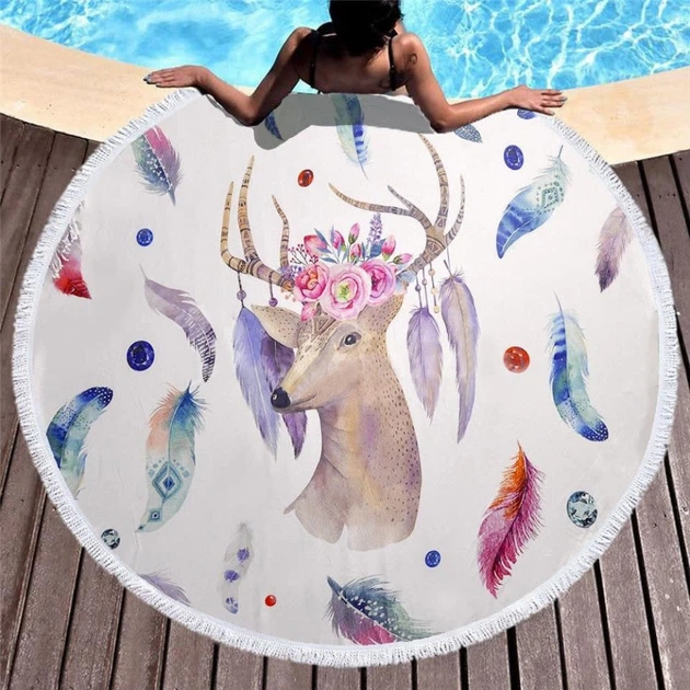 Круглий пляжний рушник (покривало) з бахромою "Ловець снів", 150см