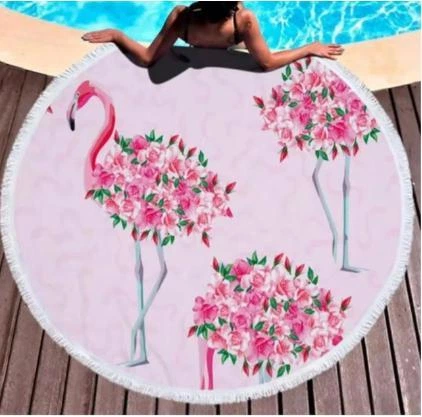 Круглий пляжний рушник (покривало) з бахромою "Фламінго", 150см