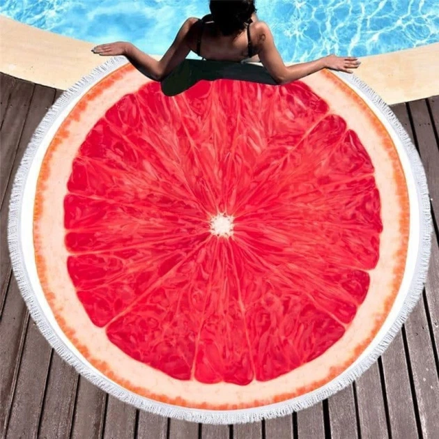 Круглий пляжний рушник (покривало) з бахромою "Грейпфрут", 150см