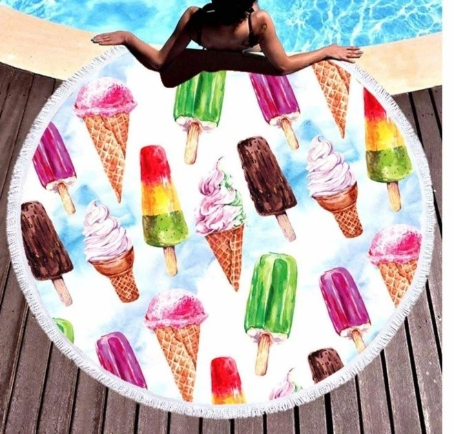 Кругле пляжне покривало Mallory Home 150х150 см морозиво ріжок та ескімо