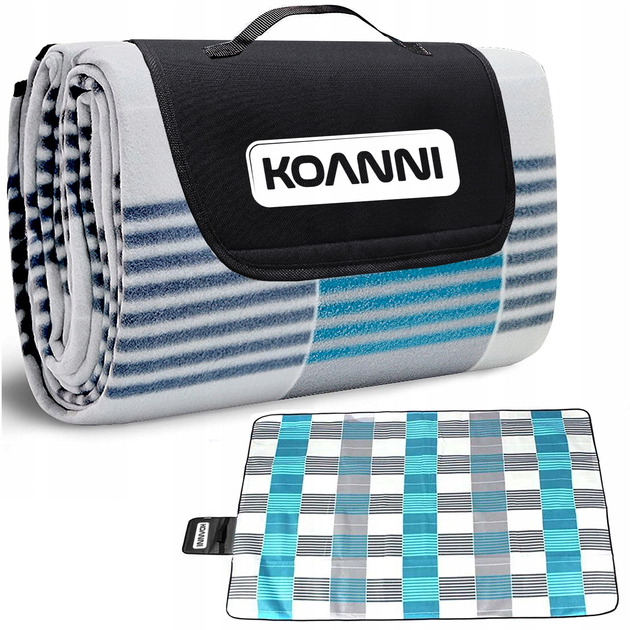 Покривало для пікніка пляжу Koanni сіро-блакитне утеплене водонепроникне 200х200 см