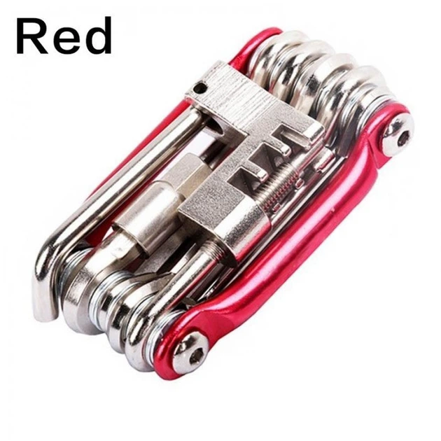 Мультитул для велосипеда, велоінструмент 11 в 1 (вичавки для ланцюга, шестигранники та ін.) Червоний