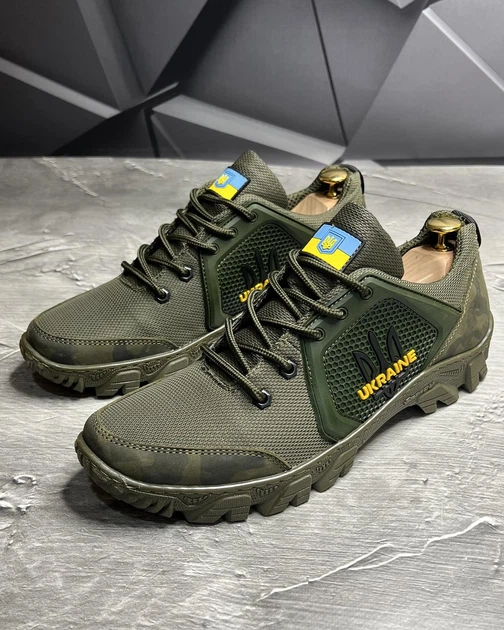 Нубукові Кросівки з патріотичним принтом олива розмір 40