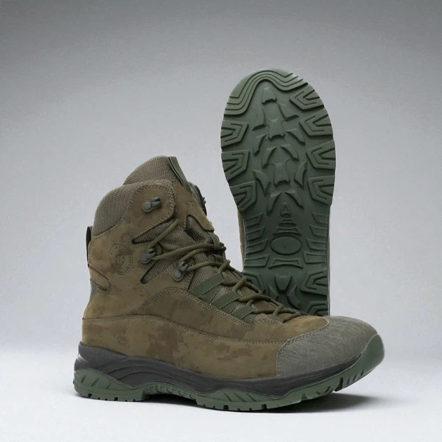 Військові Чоловічі Зимові Берці із Шкіри. Олива+Піксель. Гідрофобна шкіра. 38р (25,4 см) STZM-1050-38
