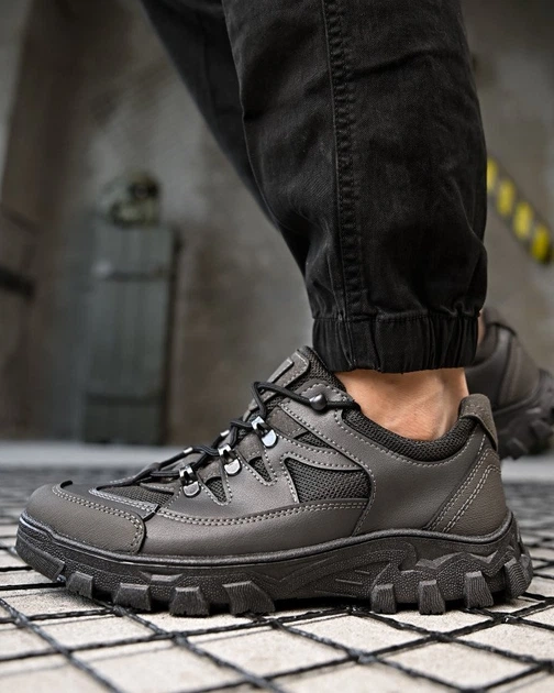 Демісезонні міські кросівки Project Grey сірі з прес-шкіри з текстильними вставками