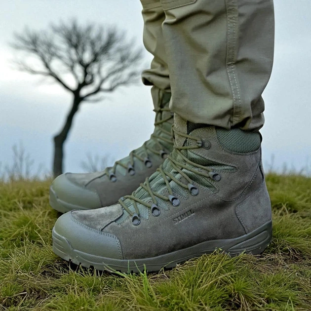 Шкіряні Демісезонні Чоловічі Берці Тактичні. Олива. Підкладка – Байка. 44р (29,4 см) STDM-1018-44