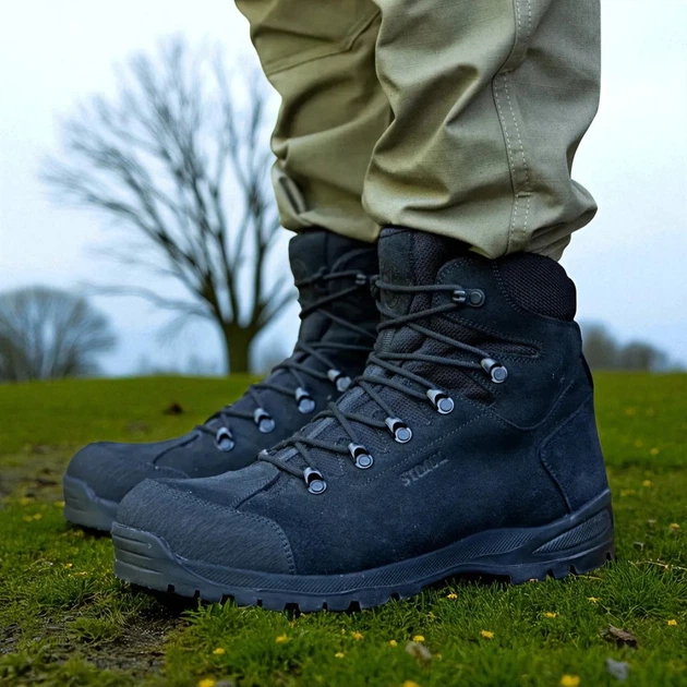 Шкіряні Демісезонні Чоловічі Берці Тактичні. Чорні. Натуральна гідрофобна шкіра. 42р (28,1 см) STDM-1019-42